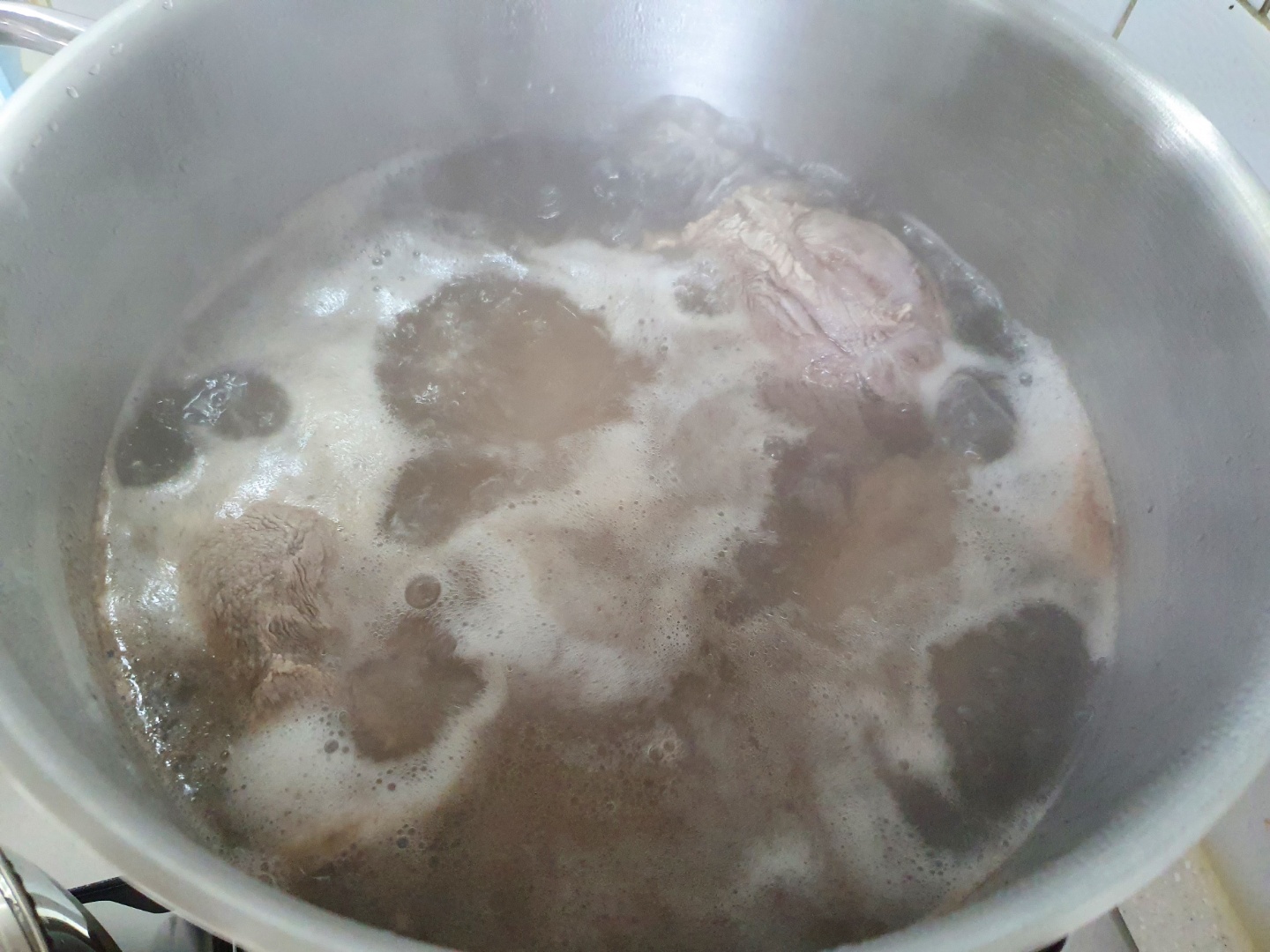 일단 고기를 한번 데쳐서 핏물을 제거한 후에 물을 버리고 다시 삶았습니다.