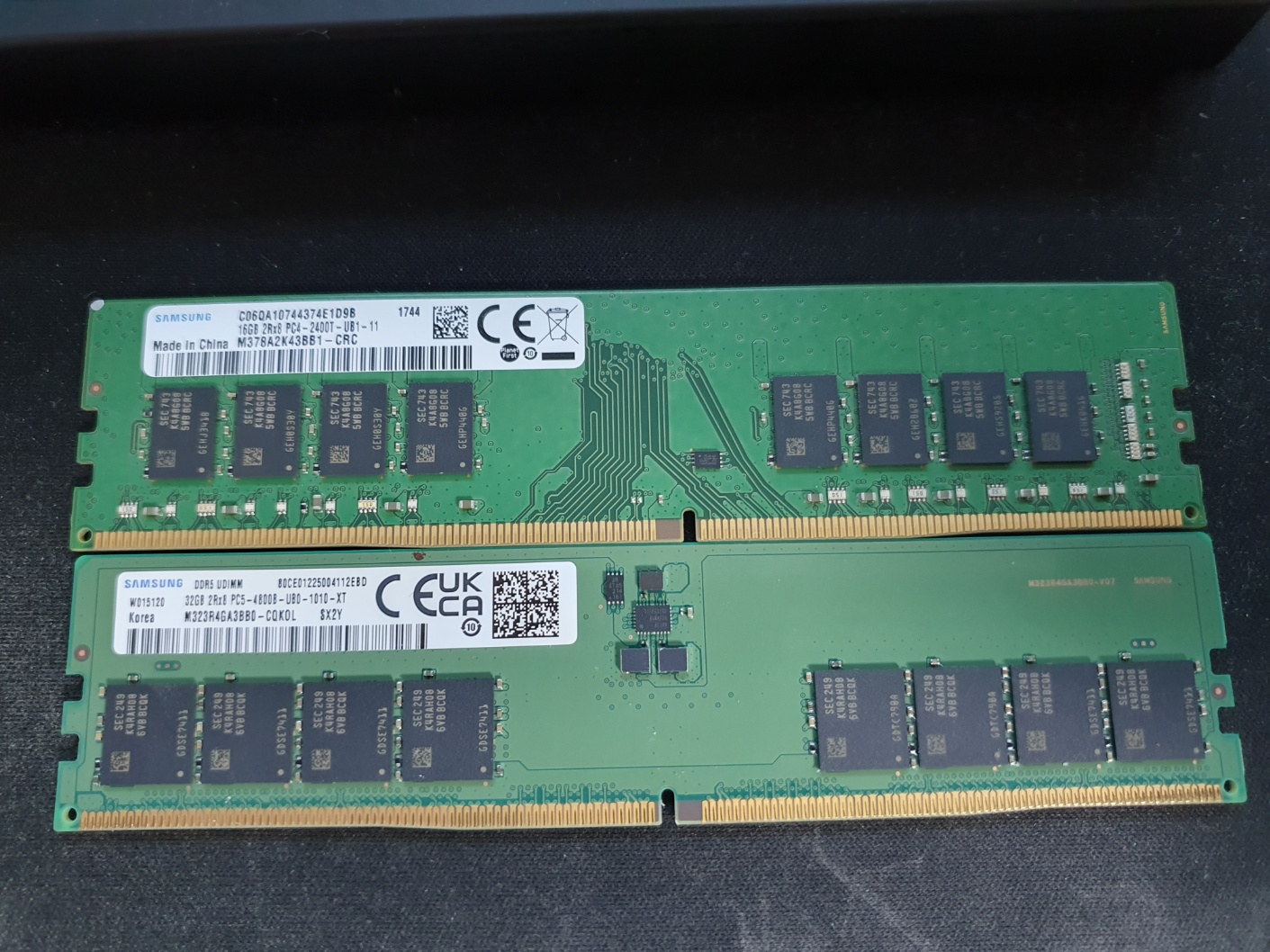 위가 DDR4, 아래가 DDR5 입니다. 재미있는 게... 램이 슬롯이 평평하지 않습니다. 가운데가 튀어나와 있습니다.