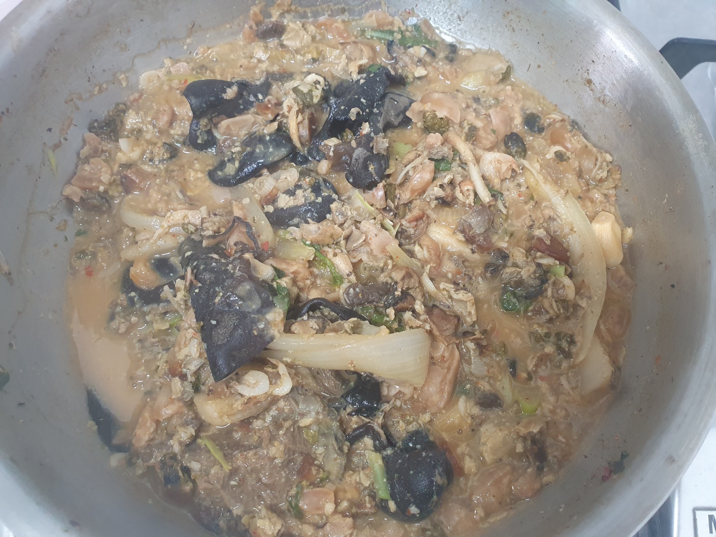 밥솥에 넣고 2시간 정도 삶고 2시간 정도 뜸을 들였습니다. 처음에 냄비로 삶다가 불조절이 귀찮아서.....