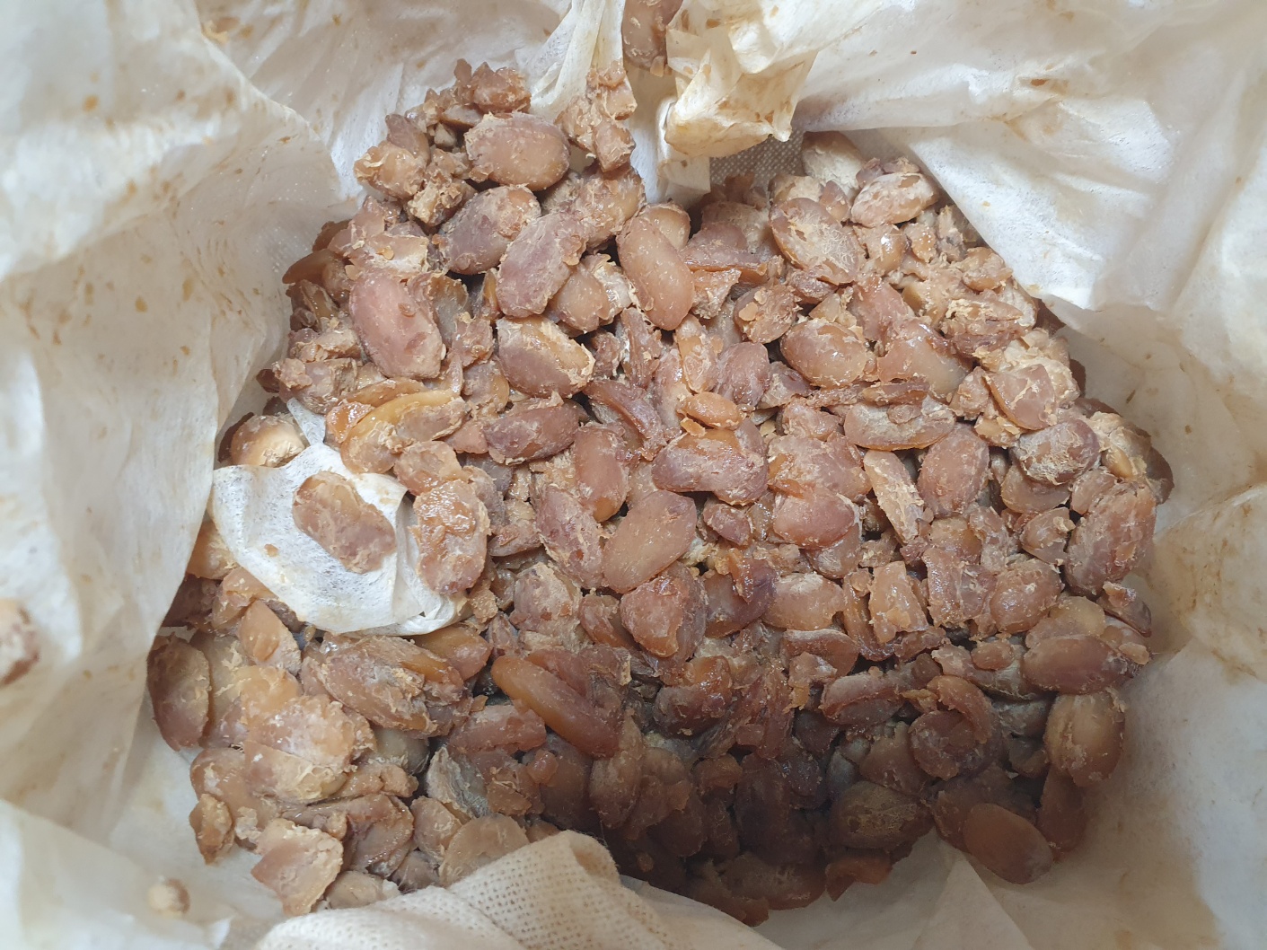 베보자기로 싼 후 따뜻하게 덮어주고 3일간 발효시켰습니다.