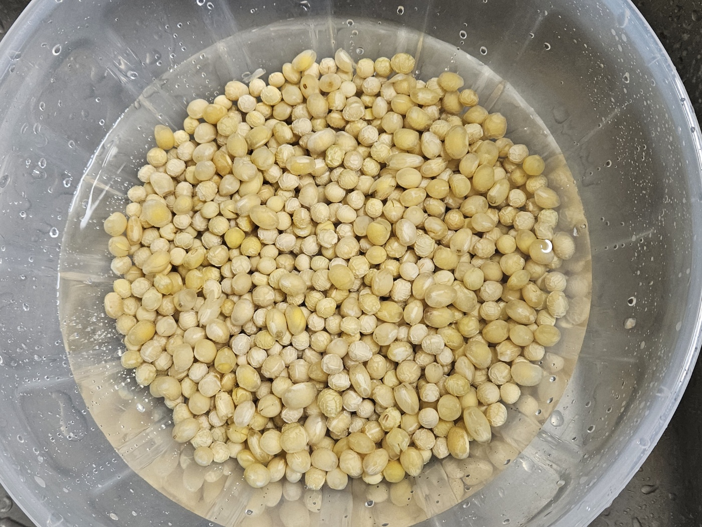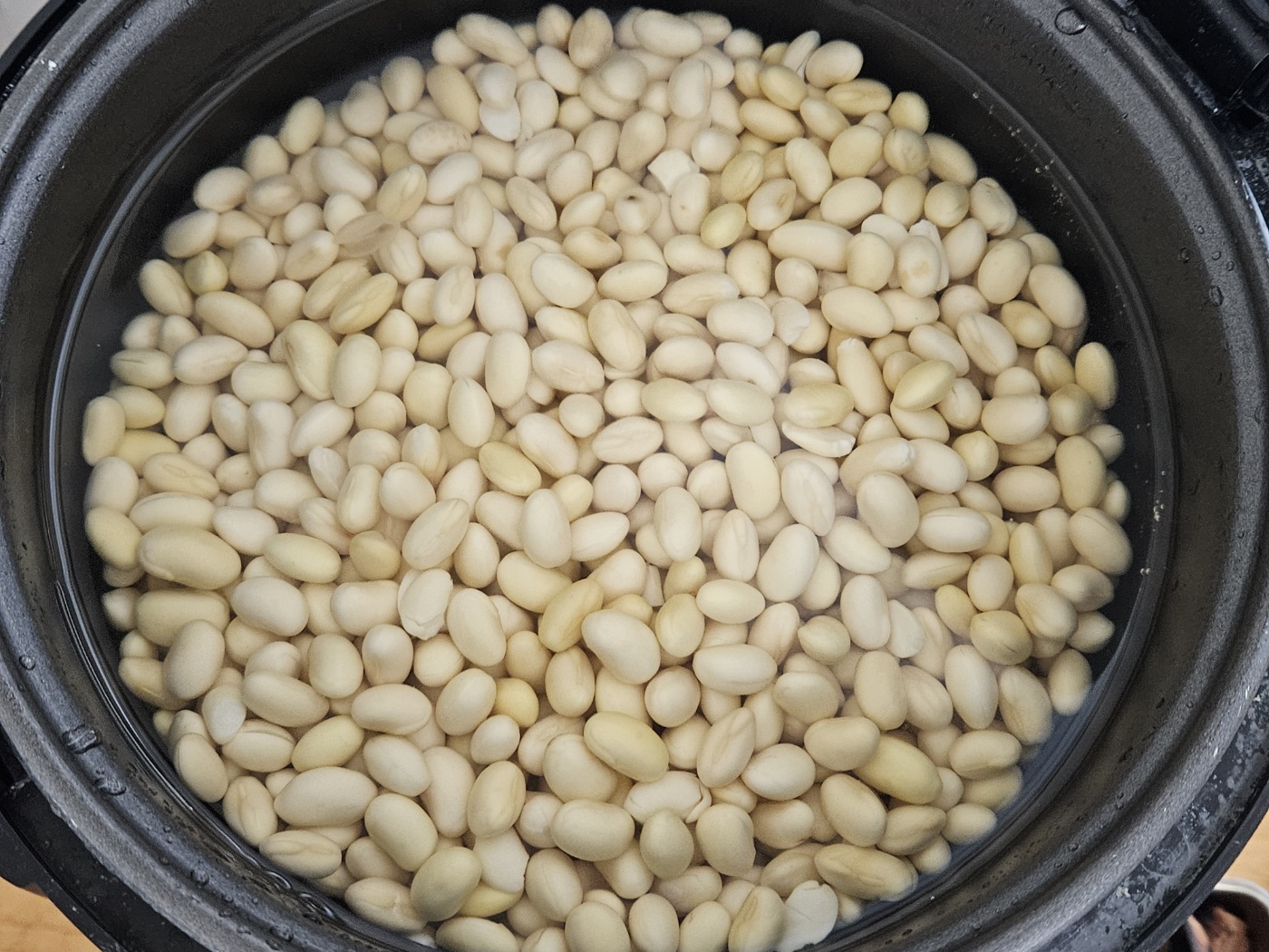 일단 콩을 씻고 물에 불립니다. 물 충분히 넣어야 합니다. 엄청나게 불어납니다. 저는 물이 조금 부족해서 더 넣었습니다.