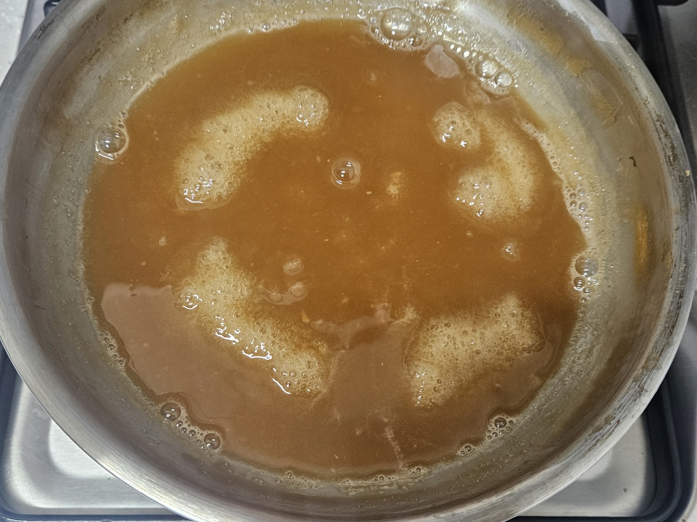 조리다 보면 갈색으로 변하고 점성이 생깁니다. 식으면 더 점성이 높아지니까 너무 심하게 조리지 않아도 됩니다.