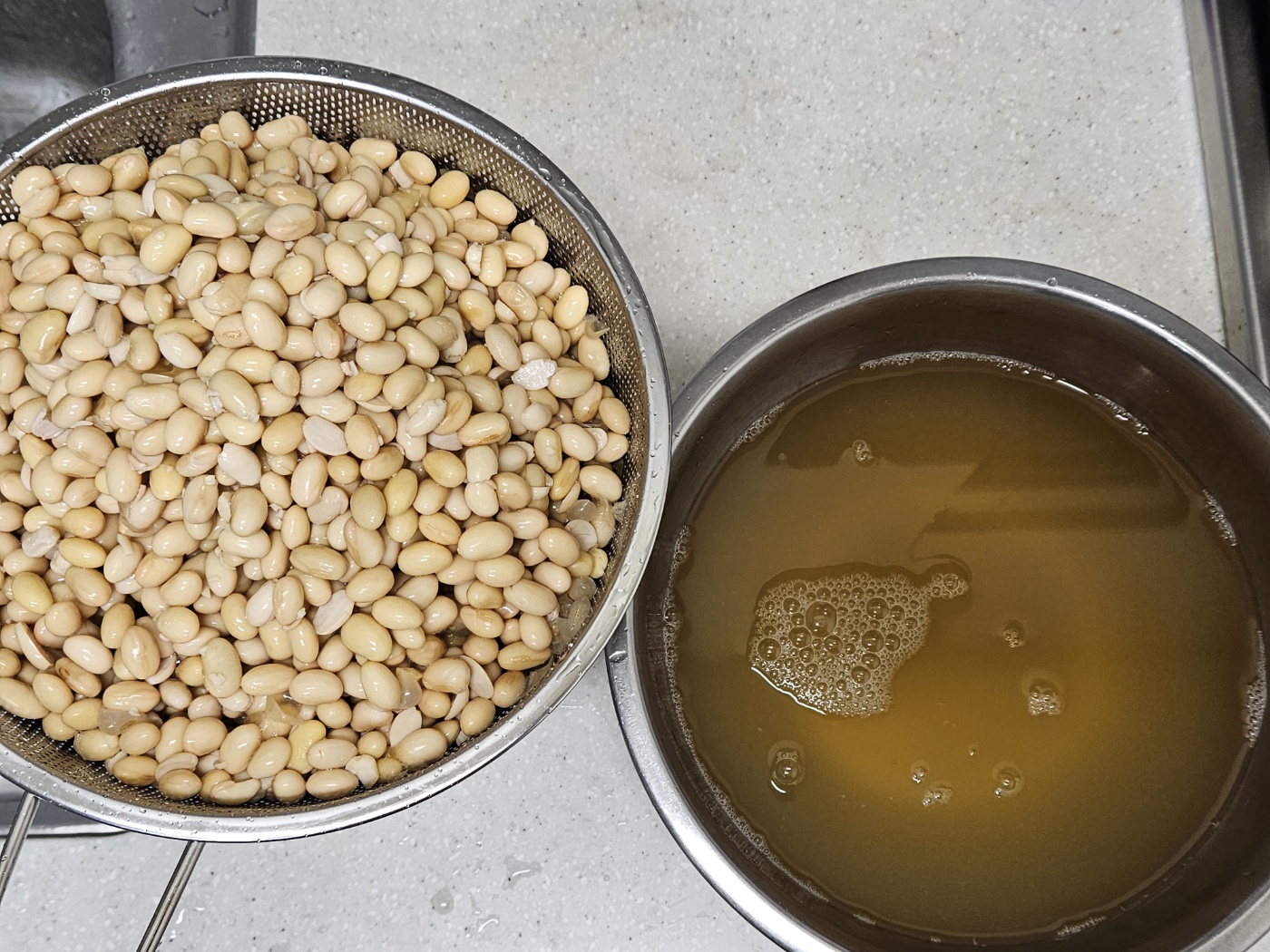 소스에는 콩물을 사용할 겁니다. 남은 콩은 뭐 그냥 먹거나 오븐에 다시 구워 먹거나, 청국장 만들어먹거나...