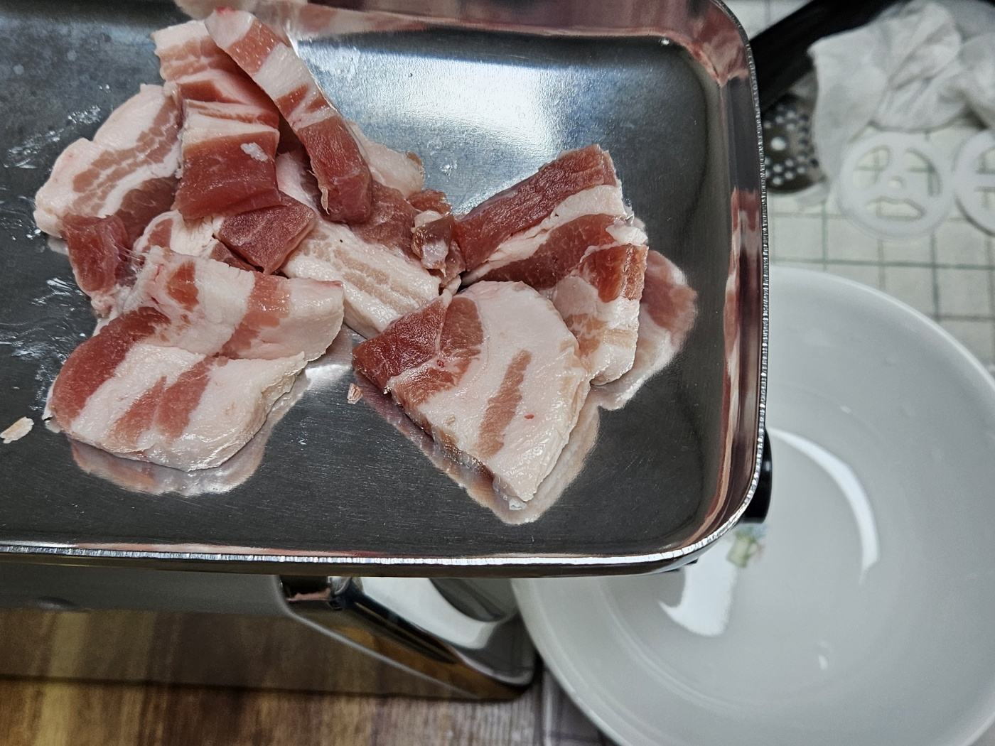 돼지 삼겹살, 목살, 앞다리살 다 해서 1.2kg 정도 사서 갈았습니다.