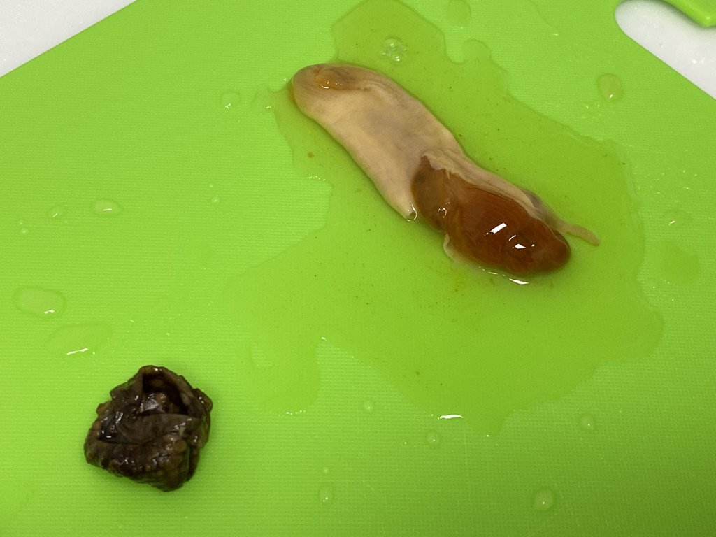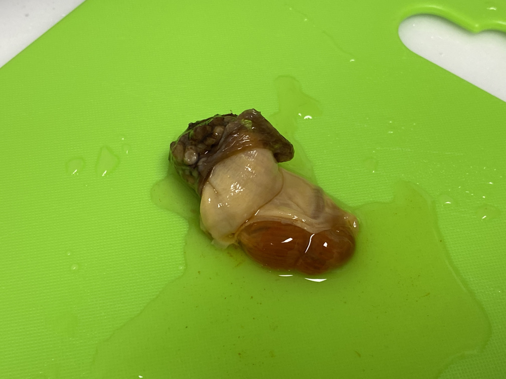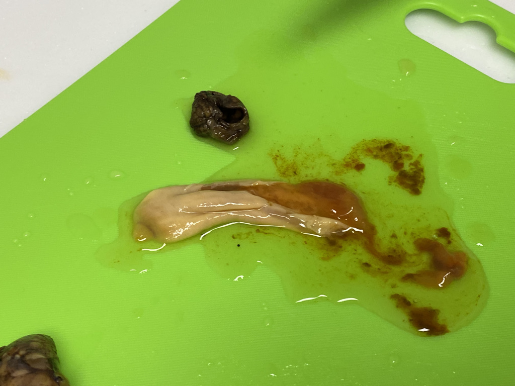 미더덕의 구조나 맛이나 손질 방법이 멍게하고 비슷합니다.