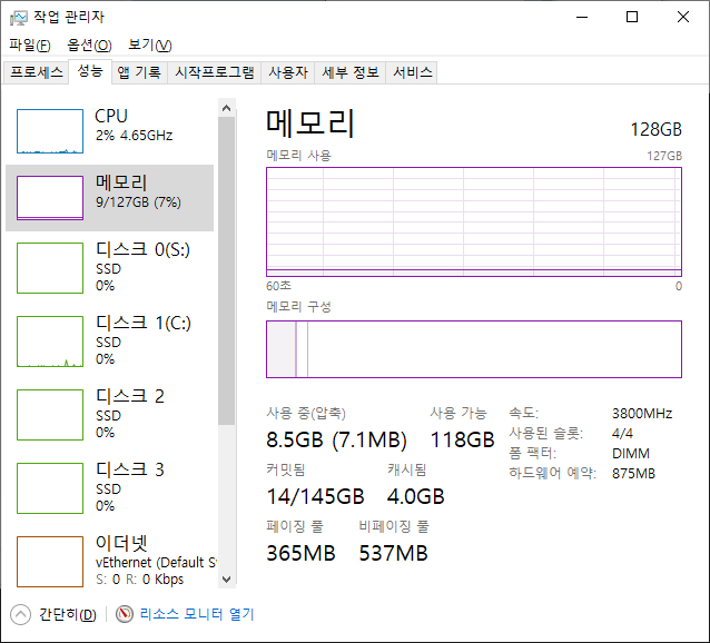 이런저런 이유로 메모리가 많이 필요해서 32GB 4개를 구매했습니다.