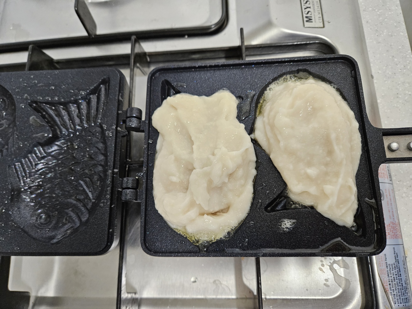 그럼 본격적으로 붕어빵 팬으로 어묵을 구워보려는데...