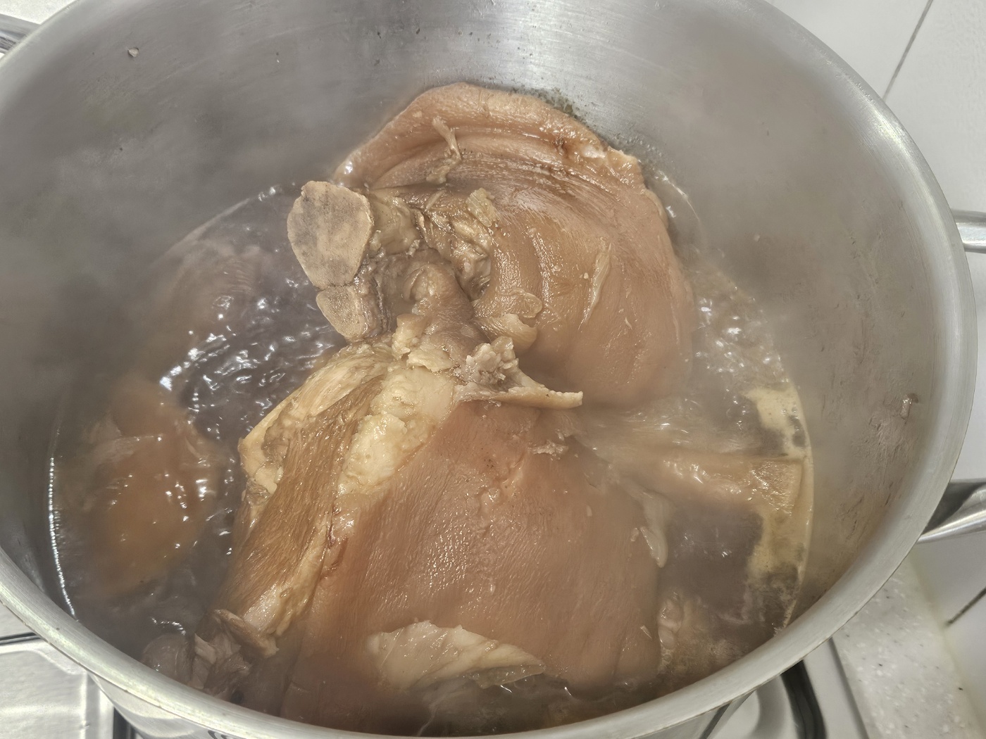 삶다 보면 일반 돼지고기에 비해 냄새가 많이 납니다. 대충 뼈, 발 쪽에서 냄새가 나는 것 같습니다.