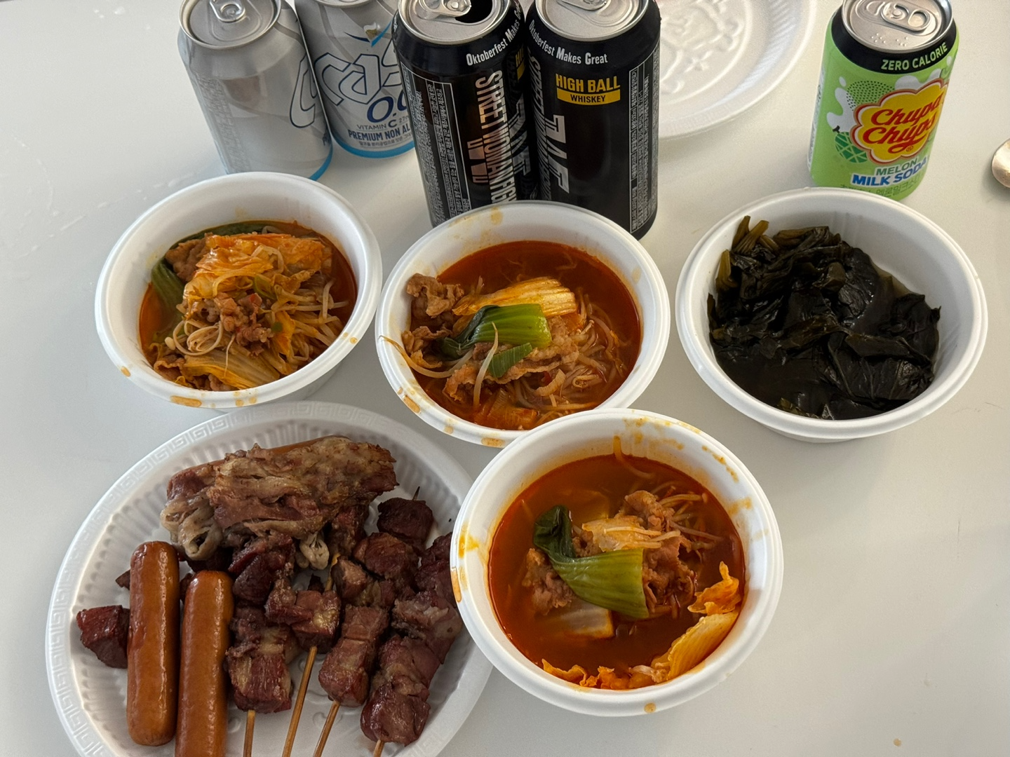 양꼬치, 우삼겹, 순대, 소세지 입니다.