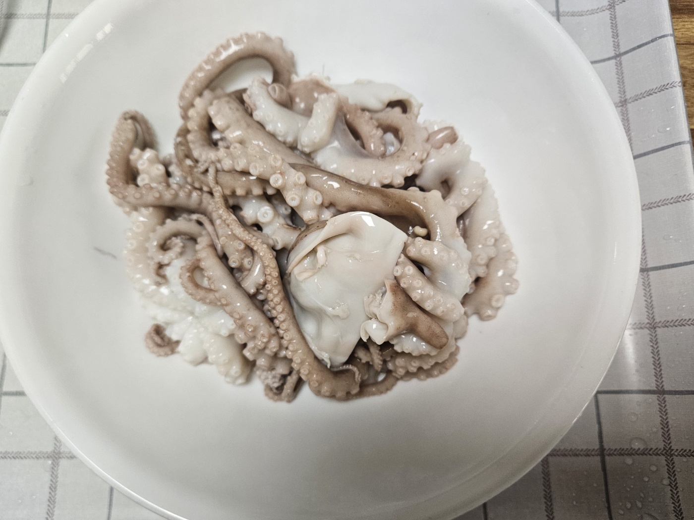 하는 김에 시장에서 낙지를 싸게 팔길래 샀습니다. 내장을 제거하고 한 15초 정도 물에 살짝 데칩니다.