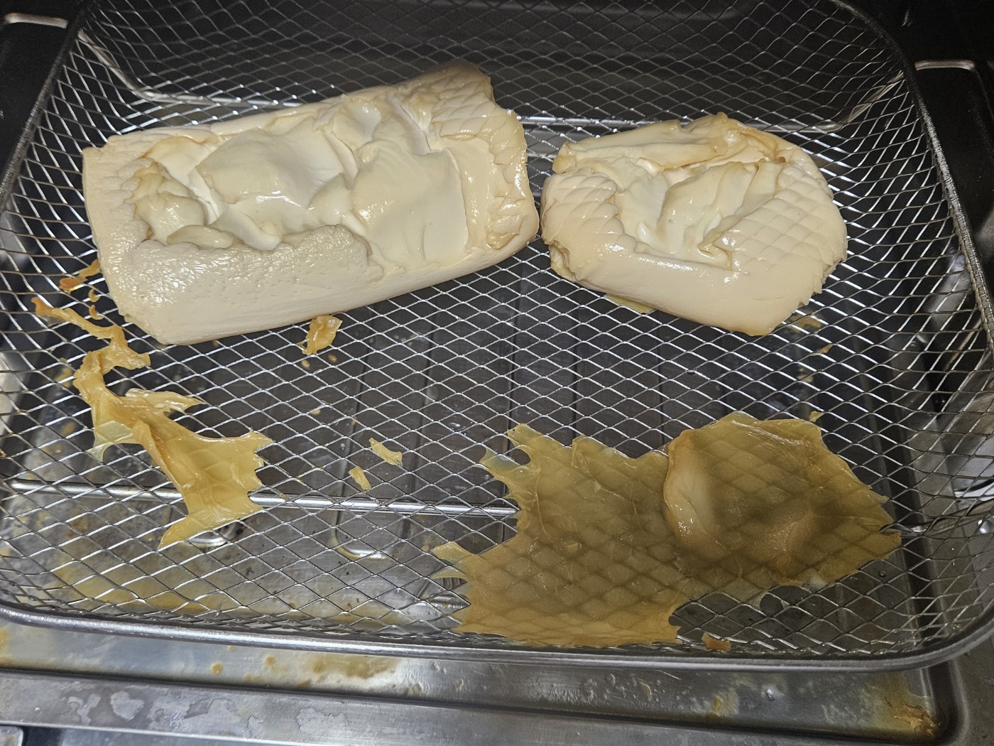 컨벡션 오븐(에어프라이어)에서 저온으로 두부를 오래 구우면 겉이 마릅니다.
