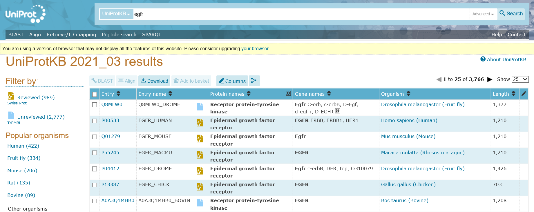 다시 UniprotKB로 돌아가서... 검색하는방법은 다음과 같습니다.