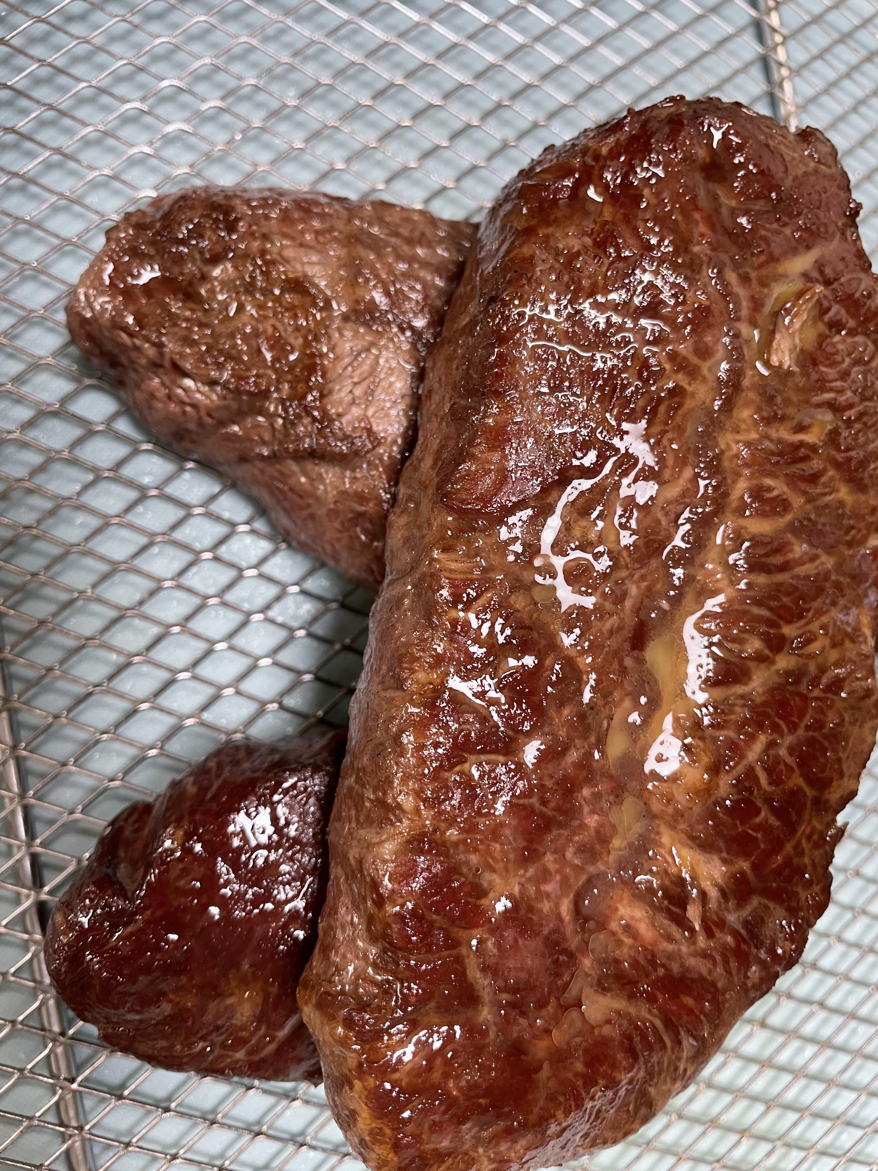 고기를 건조시키면 좋은 점은 아무래도 수분이 겉에 없다 보니 구울 때 물 때문에 기름이 튀는 일이 적고, 연기도 덜나고, 마이아 르 반응이 잘 일어난다는 점입니다. 다만 고기 안에는 여전히 수분이 남아있기에, 굽다 보면 안에서 빠져나온 수분이 기름과 만나면서 기름이 튑니다.