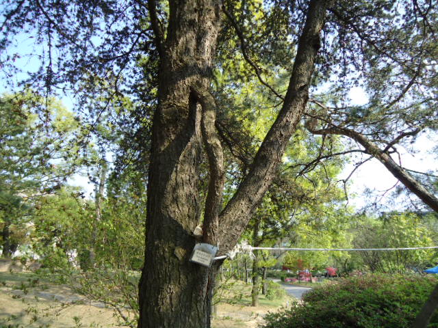 연리지는 두 나무가 서로 연결된 것을 말하는데, 이건 자신에게서 나온 가지가 자신에게 다시 파고들었습니다.