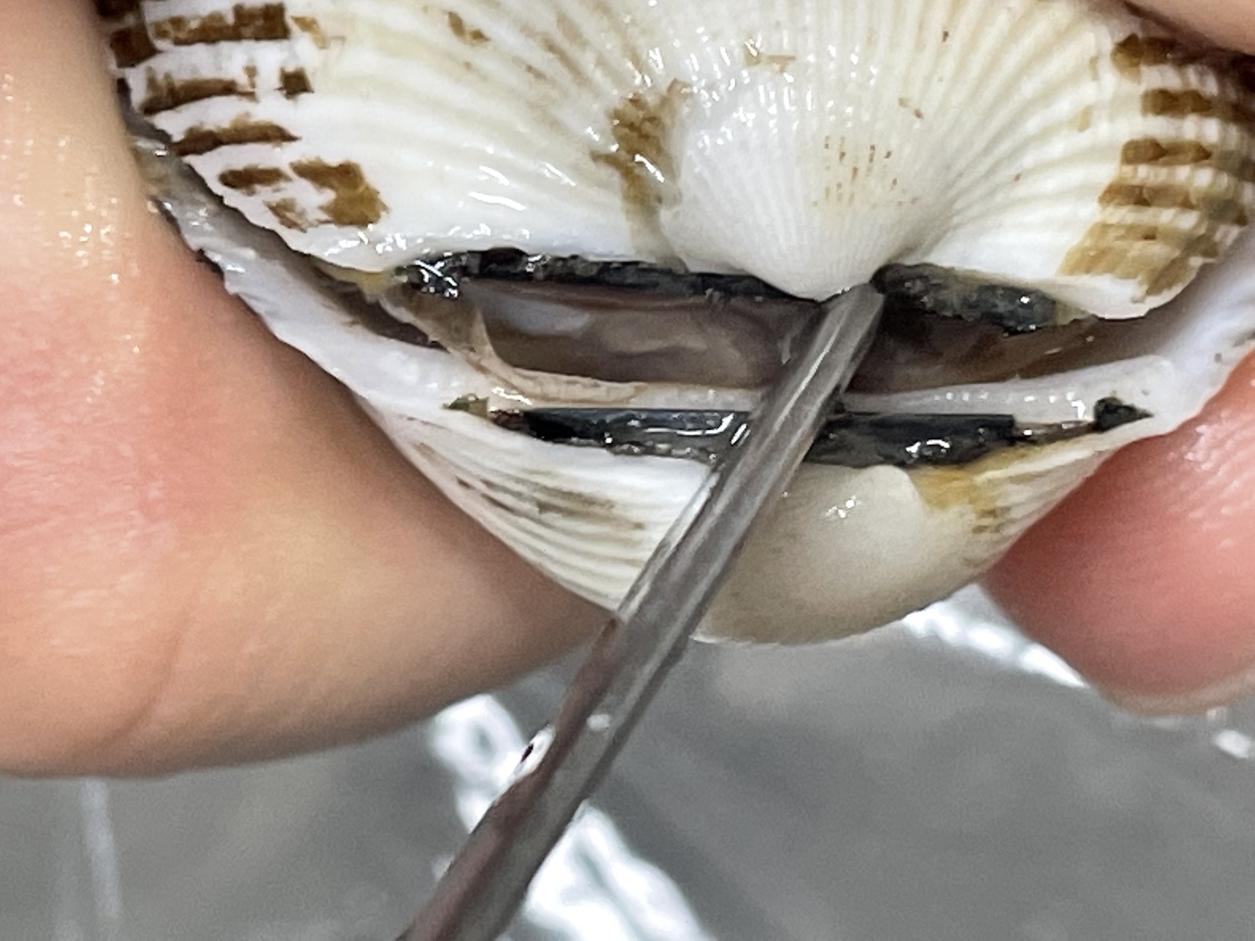 조개 칼로 찌르고 살짝 돌려주면 쉽게 깔 수 있습니다. 아마도 마트에 가면 팔 겁니다.