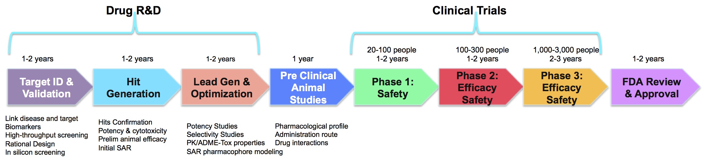 신약개발은 1조 이상의 비용과 10년 이상의 시간이 소모되지만 성공률은 5% 정도로 낮다.